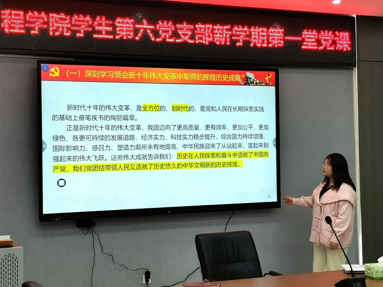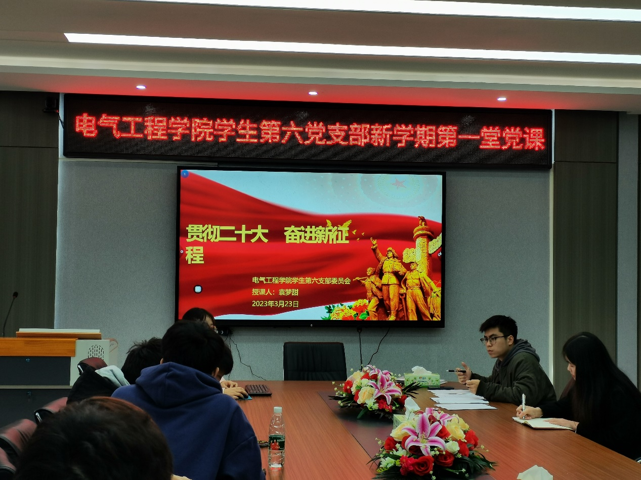 为全面深入学习贯彻党的二十大精神,引领全体学生党员坚定理想信念,凝聚奋进力量,2023年3月23日中午,PA视讯平台学生第六党支部“新学期第一堂党课”于电气楼B301开展。党课由学生第六党支部书记袁梦甜老师主讲,学生第六党支部全体党员、入党积极分子参加了此次党课。