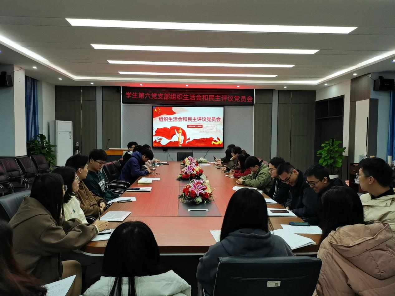 2023年3月23日中午,PA视讯平台学生第六党支部“组织生活会”和 “民主评议党员会”于电气楼B301召开。学生第六党支部书记袁梦甜与学生第六党支部全体党员参加会议。