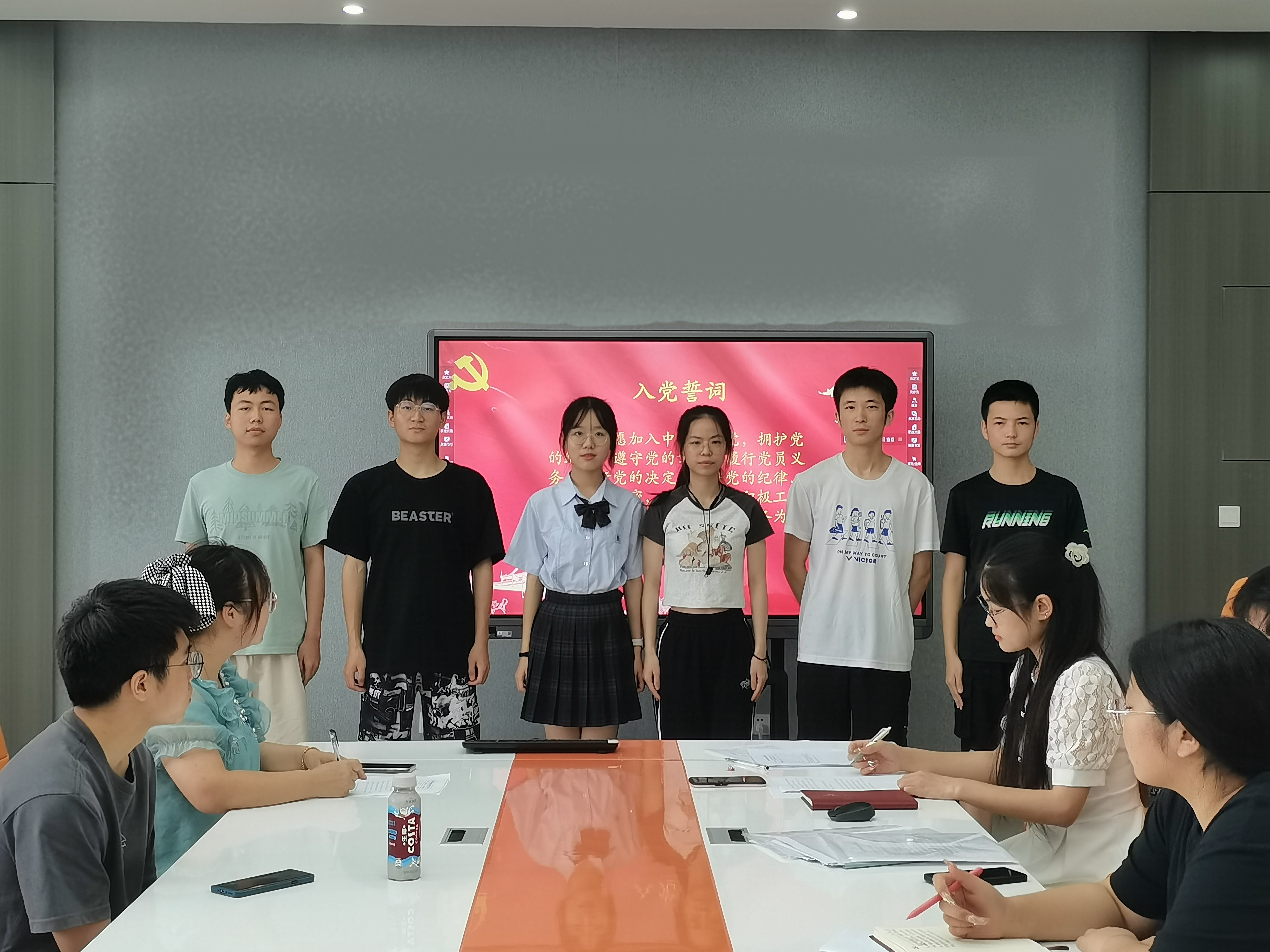 由党支部书记袁梦甜同志作总结发言,她首先欢迎周正等6名新同志加入支部,并对全体党员寄予了殷切期望。一是希望预备党员同志以正式党员的标准严格要求自己;在思想和行动上不断完善自己,争取早日成为一名合格的共产党员;二是希望全体党员同志能够坚定理想信念,改进工作作风,树立良好的党员形象;三是希望全体党员同志加强党性修养,做好表率作用;四是希望全体党员同志能够更加团结互助,提高支部的凝聚力,为支部建设贡献自己的青春力量;五是希望全体党员同志夯实自己的能力基础,增强学习的主观能动性,勇担时代责任,在新时代的征程上展现新的气象。会议末,全体党员宣誓入党誓词。