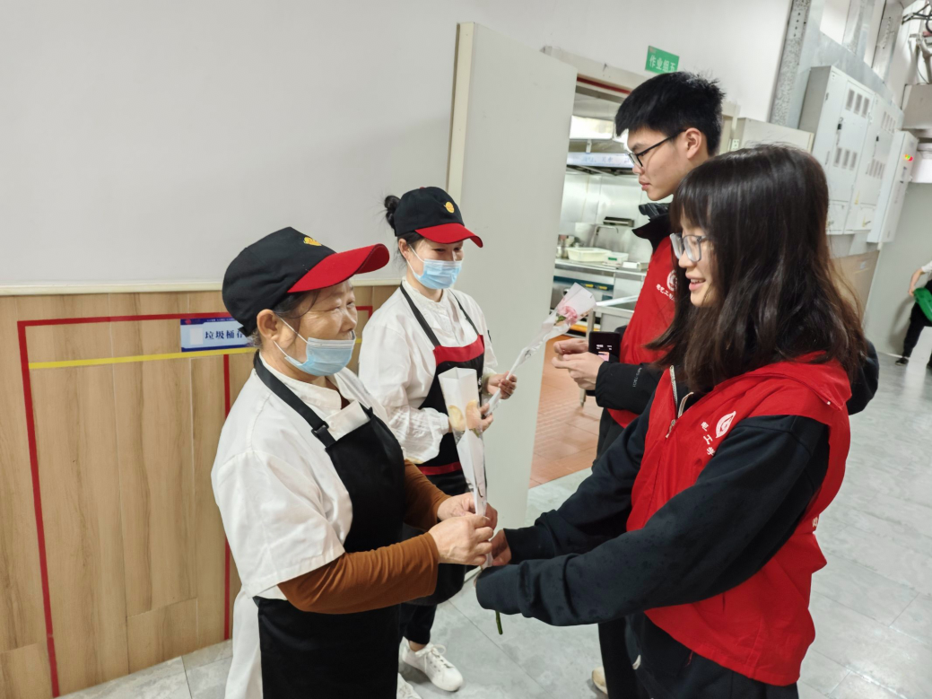在“五一”国际劳动节来临之际,为弘扬劳动精神,致敬校园劳动者,PA视讯平台,PA视讯,PA视讯官网组织开展了“鲜花赠模,礼敬平凡”主题慰问活动。志愿者们走进保卫室、医务室、后勤服务中心等场所,通过“一束鲜花表心意,一声问候传真情”的朴素形式,表达对劳动者的崇高敬意。