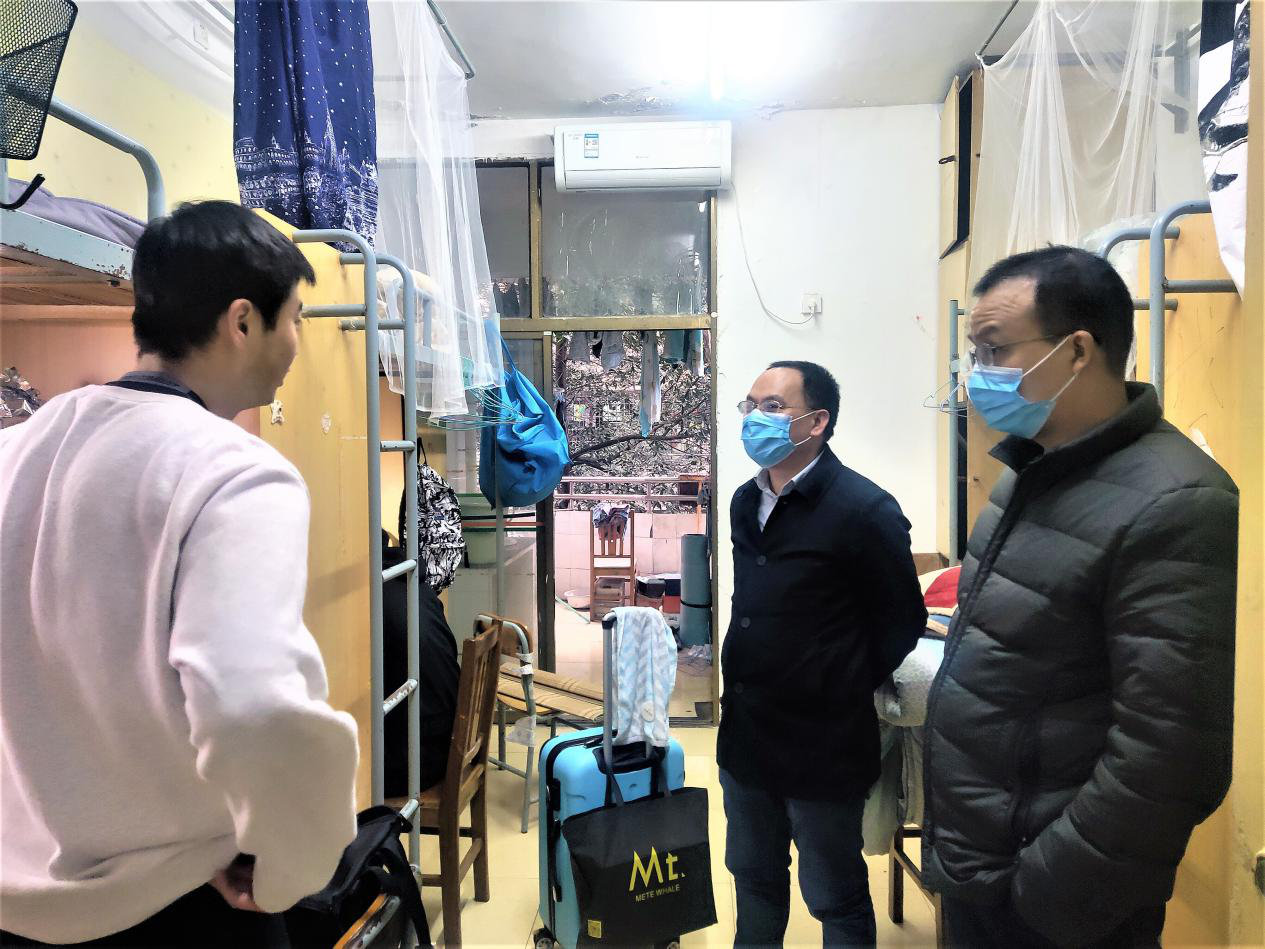 走访过程中,学院领导为同学们送去了新年祝福。希望在新的学期,同学们能共同创造干净舒适的宿舍环境。老师们还帮助同学们寻查宿舍内存在的安全隐患,叮嘱同学们做好宿舍各项安全措施,树立好安全防范意识。学院领导与同学们进行亲切的交谈,互相分享寒假生活趣事,同时还深入了解了学生在寒假期间的学习情况以及在寒假遇到的困难,并给出切实可行的建议。春夏呼吸道传染病还很容易发生,希望同学们坚持戴口罩、保持距离、少聚集、继续保持警惕,疫情防控不能放松。