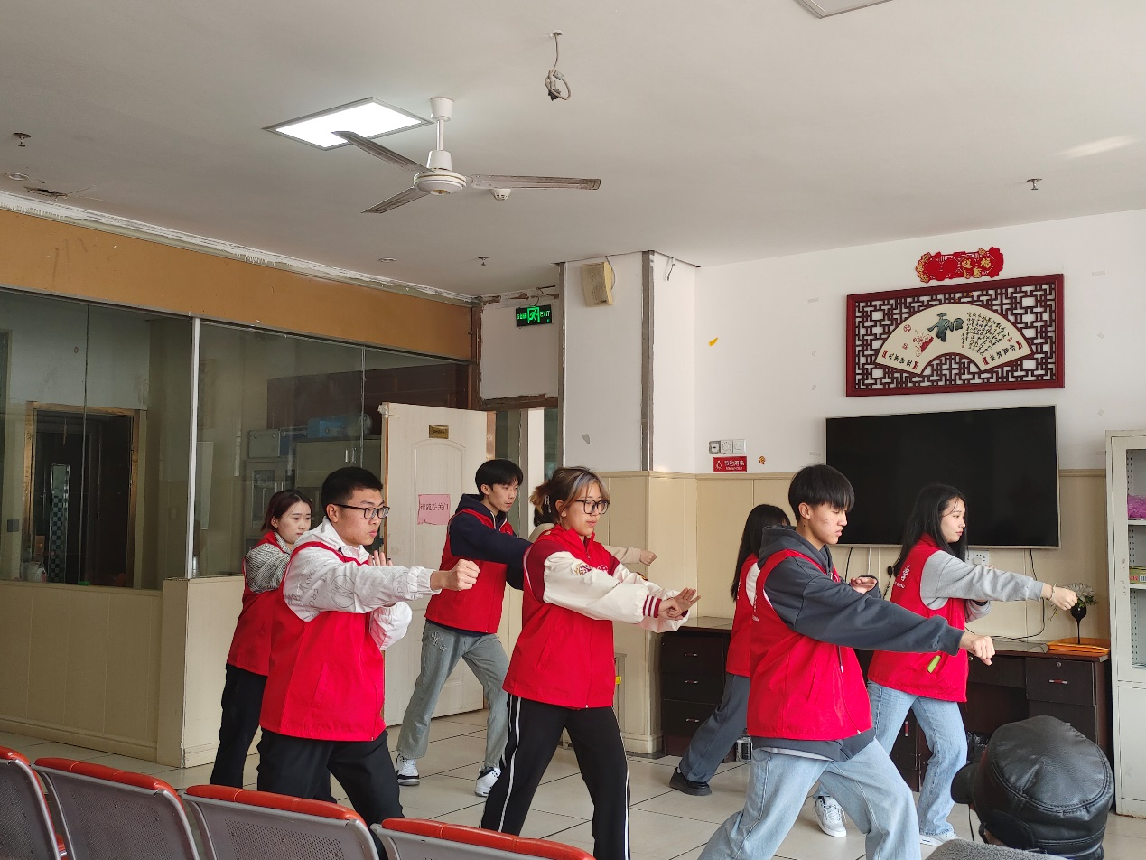 随后,志愿团队还为老人们带来了一段太极拳表演。当提及太极拳时,老人们脸上露出兴奋的表情,他们回忆起自己练习太极拳的经历。表演过程中,老人们全神贯注观看表演,露出慈爱的微笑,看到精彩部分时,老人们用热情的掌声表达鼓励。活动进行到了尾声,志愿者们与老人们进行了合影,临走前,老人们依依不舍地嘱咐着志愿者们要“好好学习,天天向上”,志愿者们握着老人的手叮咛着“注意身体,健康快乐”。