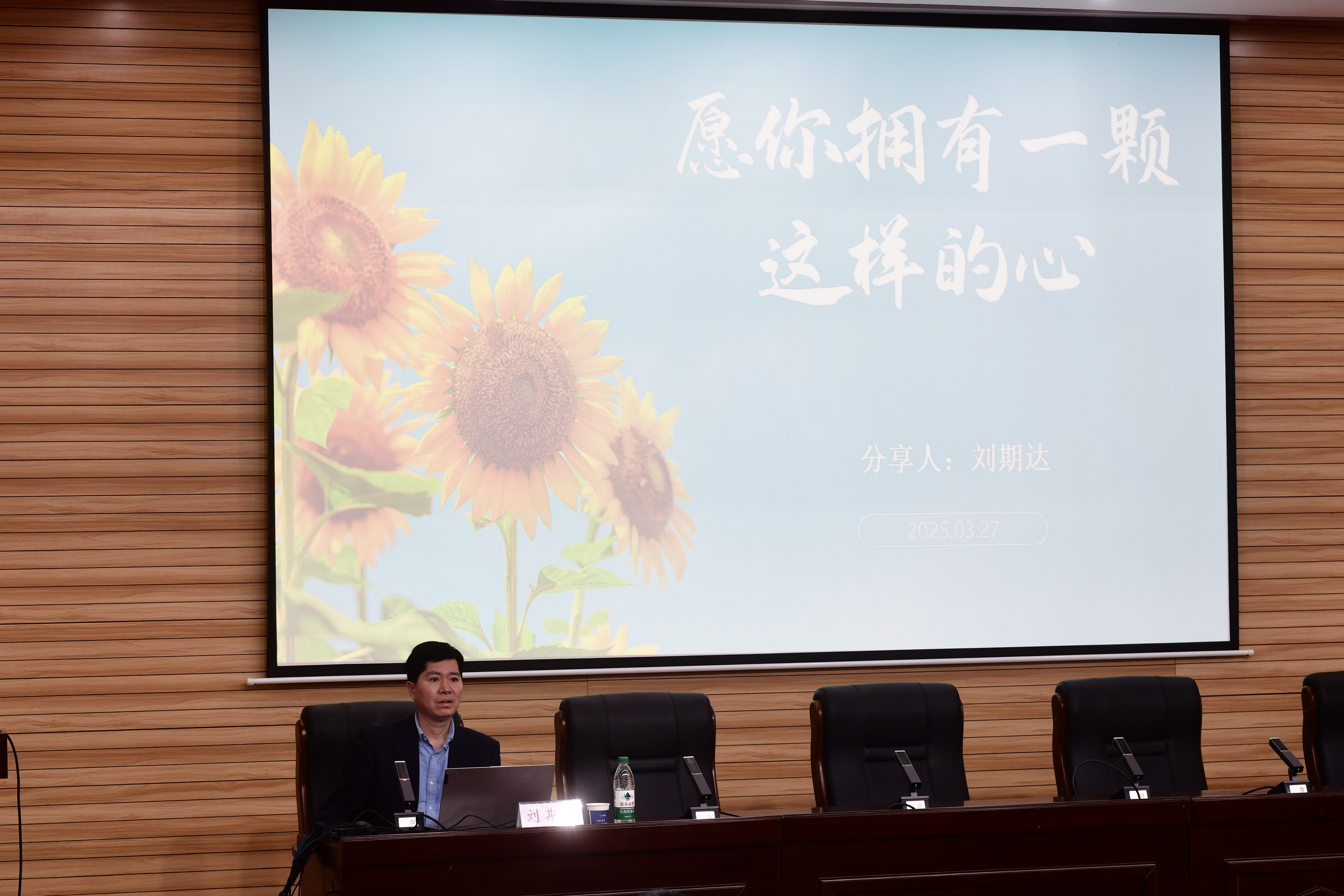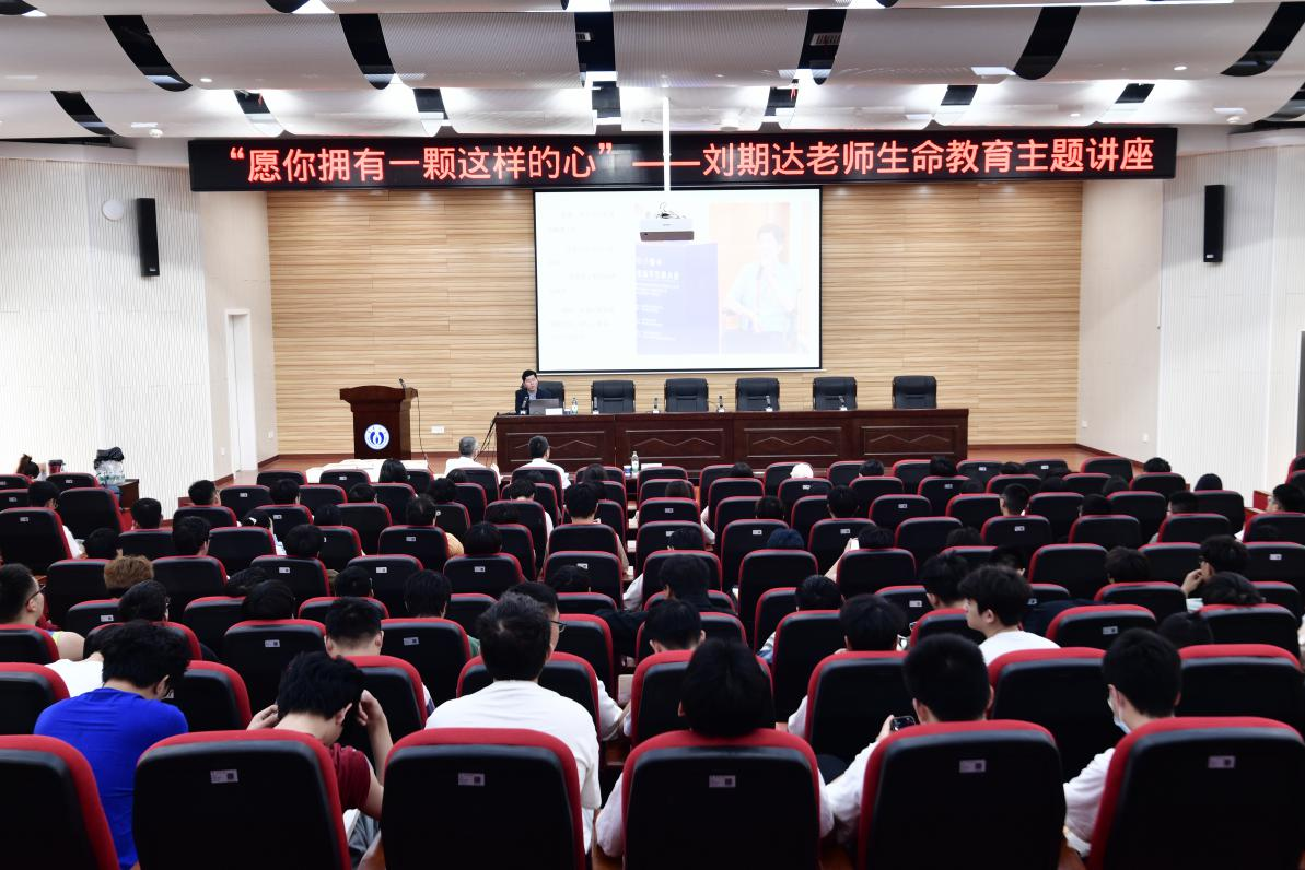 讲座中,刘期达老师以“不管处境多么艰难都要追求价值,在价值感中感受丰盈的心;不管遭遇多么困苦,都要心怀感恩,在社会支持中感受安稳的心;不管现实多么冰冷,都要热爱生活,在乐趣中感受鲜活的心;不管岁月多么幽暗,都要充满希望,在希望中感受勇敢的心”四大精神支柱为主线,以自身经历为切入点,生动且深刻地阐述生命的价值与意义。他通过展示一张张记录自己治疗过程、生活点滴的照片,分享了自己在与罕见病漫长斗争过程中的种种艰难时刻,将抽象的生命教育理念具象化。从最初面对疾病的恐惧与无助,到逐渐接纳并与之顽强抗争的心路历程,以此勉励青年学子:“人生智慧在于等待与希望,要用“打怪升级”的勇气突破舒适区,同时保持感知美好的柔软心灵。”让在场师生真切感受到生命的坚韧与不屈。