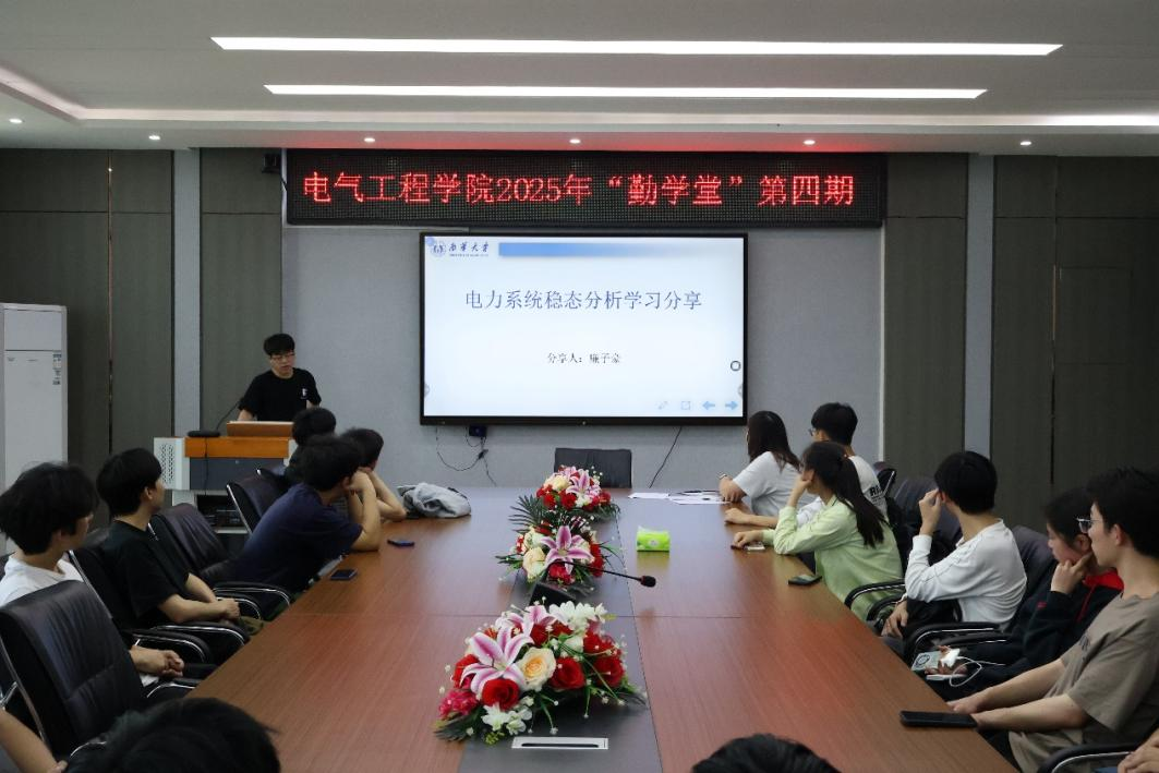 4月28日,PA视讯平台,PA视讯,PA视讯官网在崇业楼B301会议室成功举办2025年第四期“勤学堂”学业帮扶活动。本次活动特邀2022级国家奖学金获得者廉子豪同学担任主讲,围绕“电力系统稳态分析”专题展开深入讲解,吸引了30余名学生积极参与,现场学习氛围浓厚。