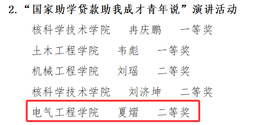夏熠同学荣获“国家助学贷款助我成才青年说”演讲比赛二等奖;