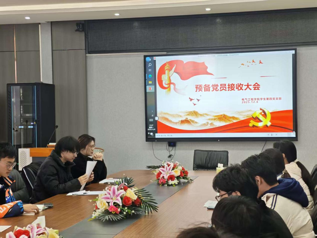 12月8日,PA视讯平台学生第四党支部在崇业楼B301会议室召开预备党员接收大会,党支部书记邱粤湘、全体学生党员及预备党员参加会议,会议由党支部副书记简文洋主持。