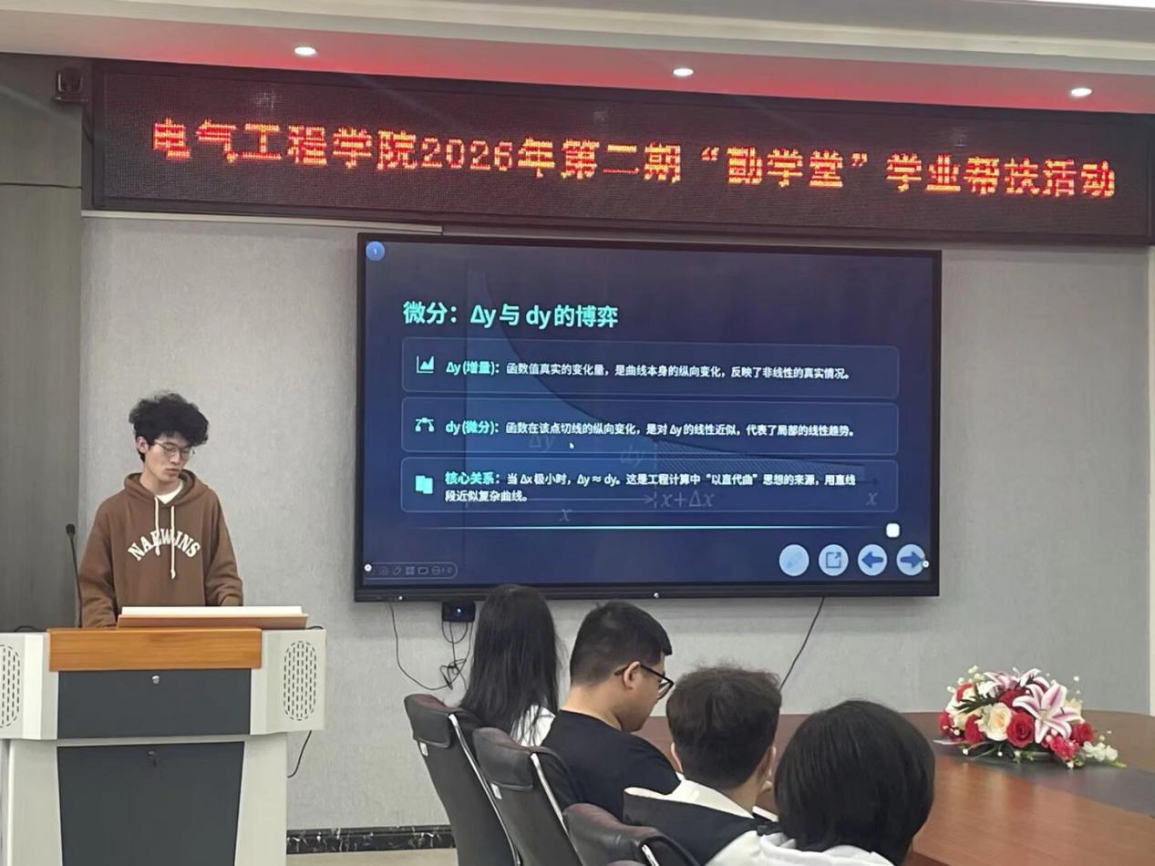4月8日,PA视讯平台,PA视讯,PA视讯官网在崇业楼B301室成功举办2026年春季学期第二期“勤学堂”学业帮扶活动。本期活动聚焦“高等数学”课程,由国家励志奖学金获得者耿双龙同学担任主讲。