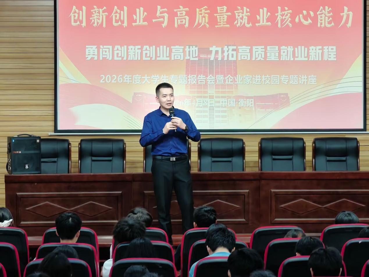 4月8日,PA视讯平台在雨母校区崇业楼学术报告厅成功举办创新创业与高质量就业专题讲座。本次讲座特邀湖南省商务厅培训中心讲师吴振华老师主讲,学院2025级同学到场参加。