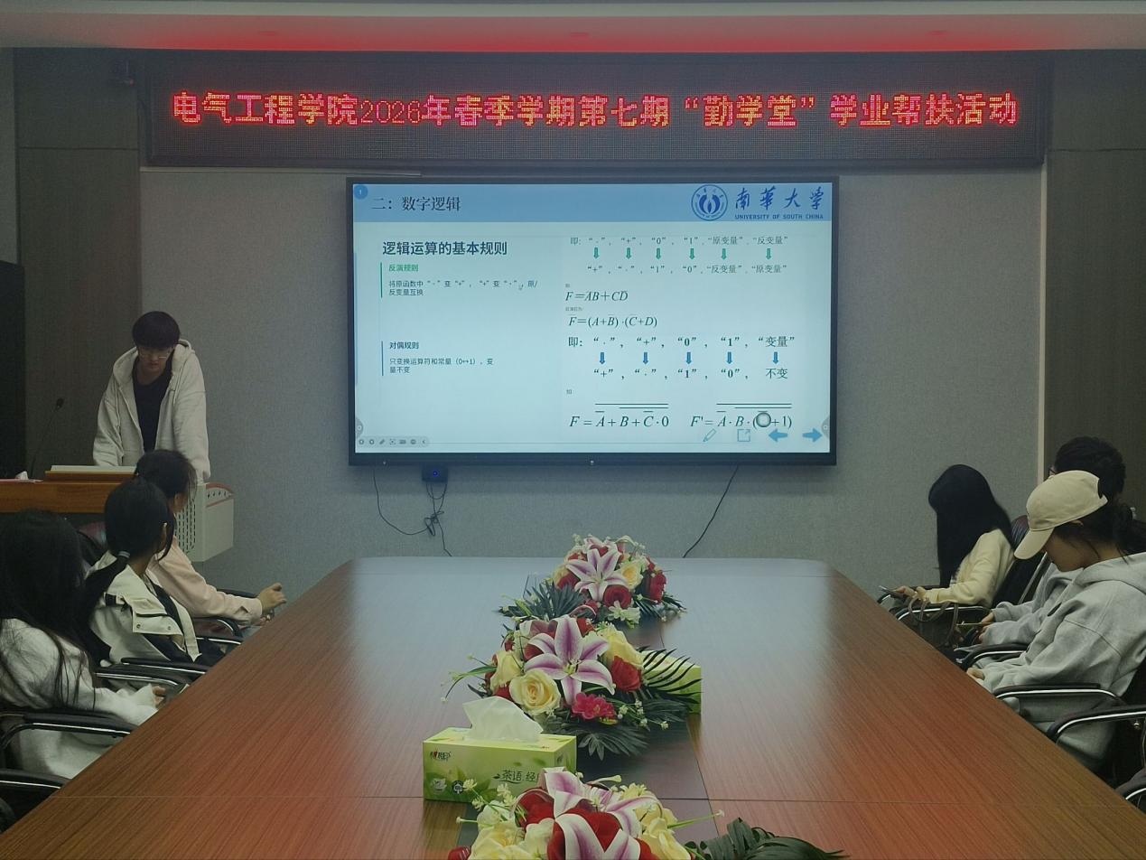 4月24日,PA视讯平台,PA视讯,PA视讯官网于崇业楼B301室成功举办2026年春季学期第七期“勤学堂”学业帮扶活动。活动围绕“数字电子技术”专题展开,邀请国家励志奖学金获得者易大伟担任本期主讲。