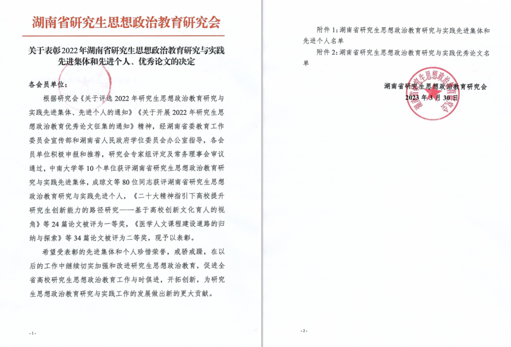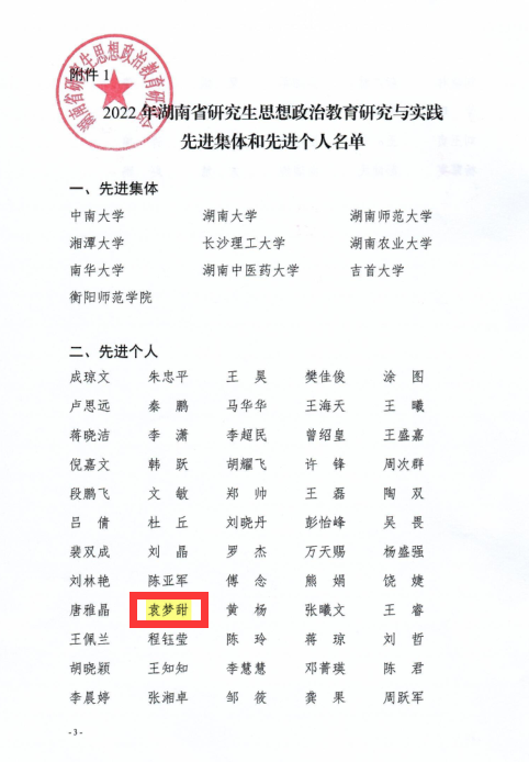 近日,在湖南省研究生思想政治教育研究会组织开展的2022年先进集体、先进个人和优秀论文的评选中,PA视讯平台辅导员袁梦甜老师获评“2022年湖南省研究生思想政治教育研究与实践先进个人”。