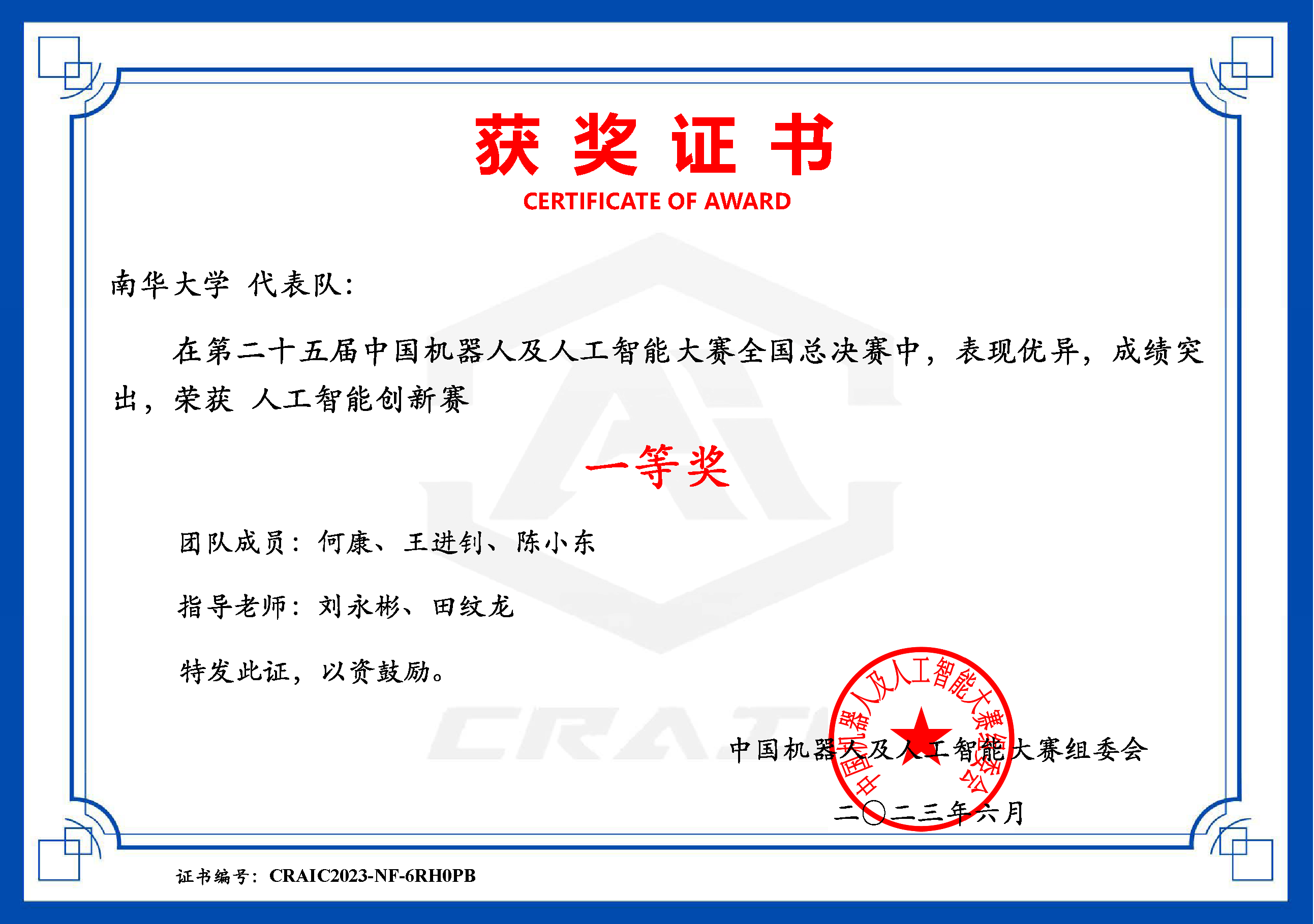 我校学子在第二十五届中国机器人及人工智能大赛中喜获佳绩