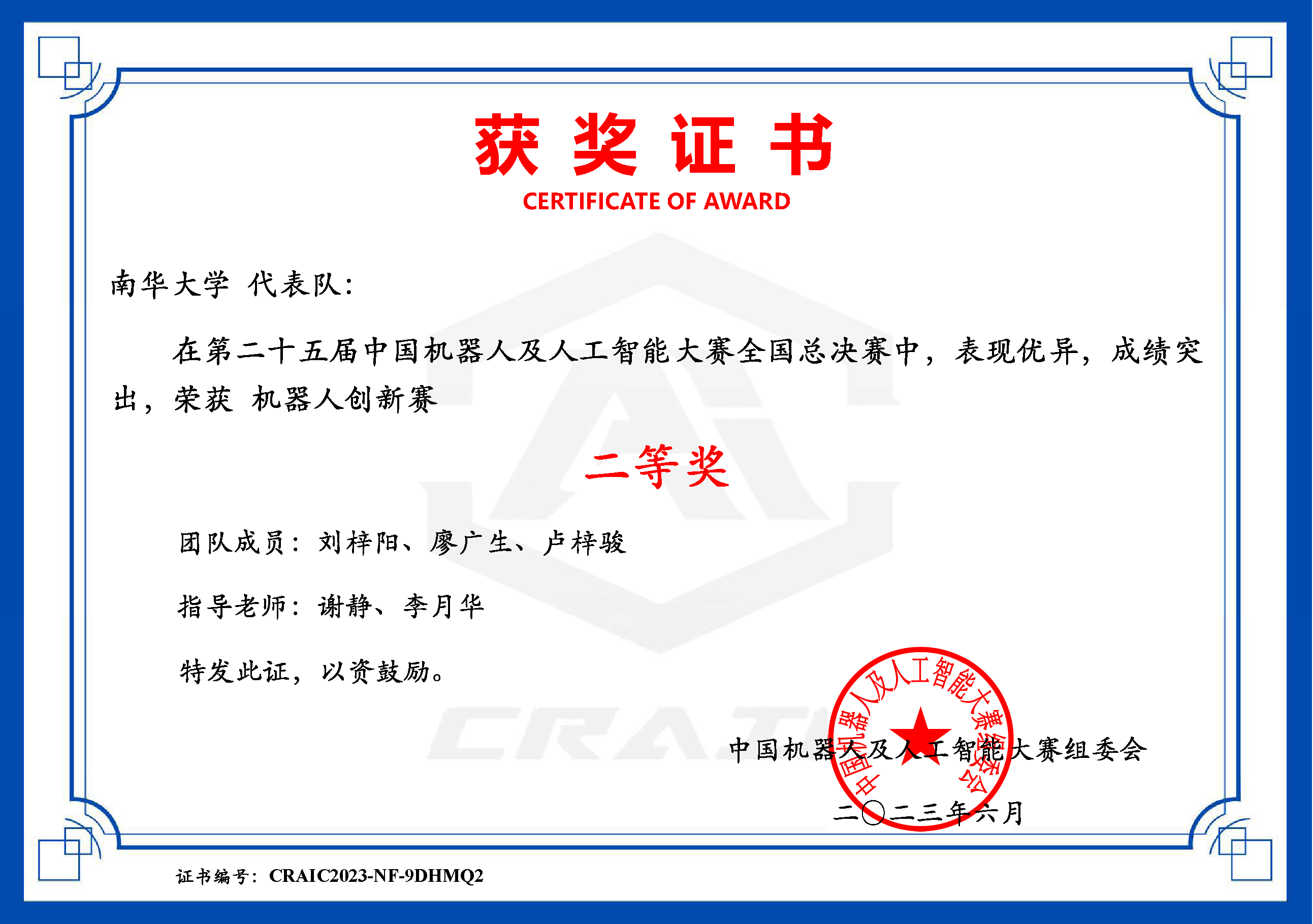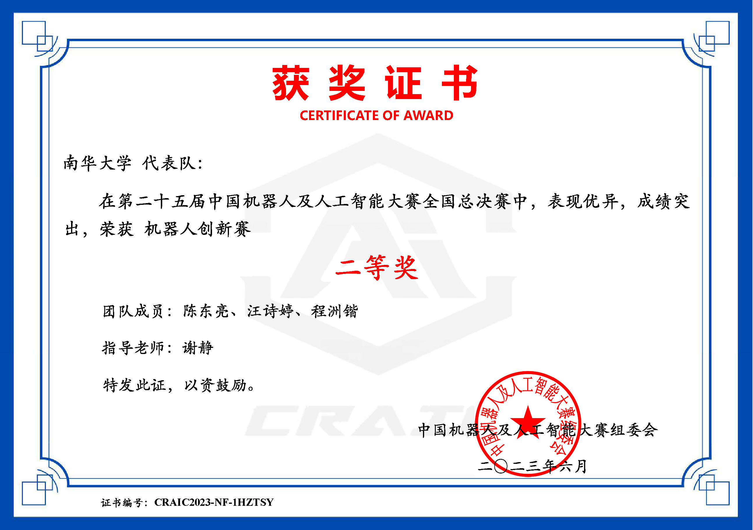 国家级二等奖 |