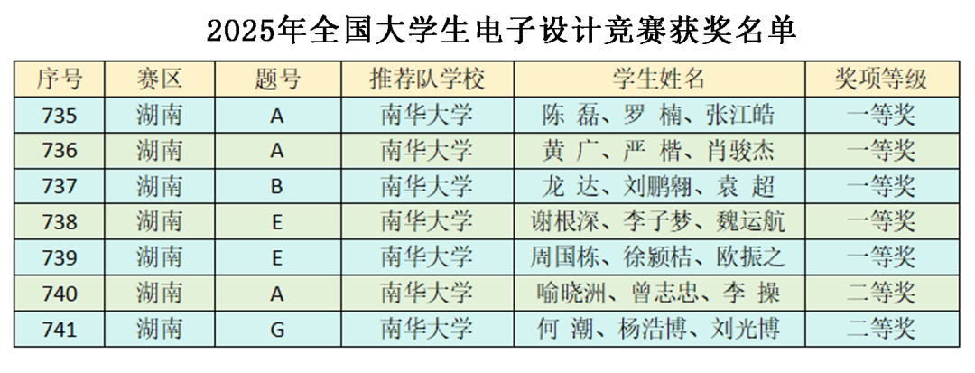 一叶知秋,金风送爽。2025年全国大学生电子设计竞赛成绩揭晓。PA视讯平台参赛代表队在此项高水平全国性学科竞赛中,共荣获全国一等奖5项、全国二等奖2项获全国一等奖数量位列湖南省参赛高校首位跻身全国前十。此外,在2025年第二十届中国研究生电子设计竞赛全国总决赛中获全国总决赛技术赛道一等奖和二等奖。