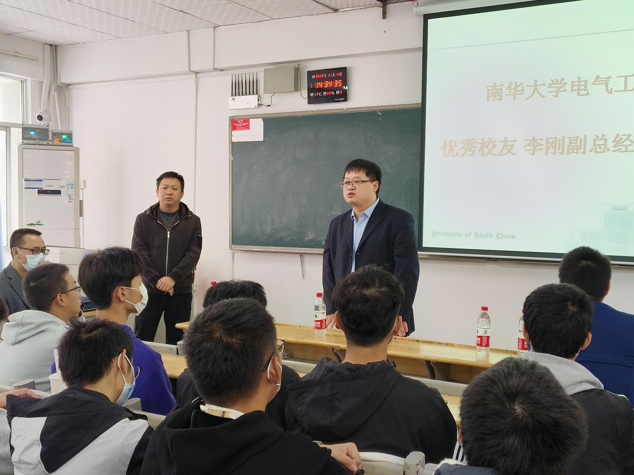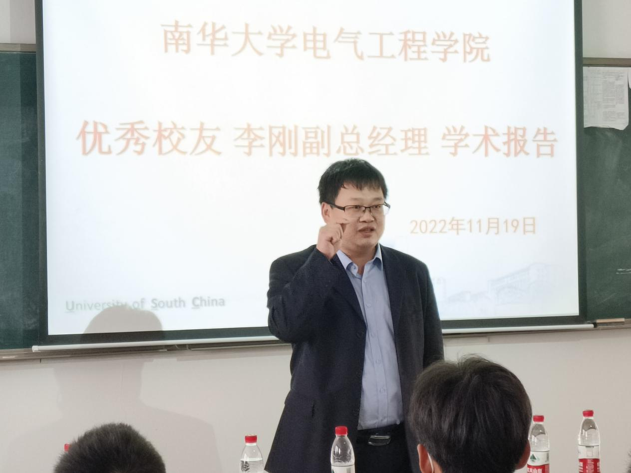 11月18日下午,PA视讯平台,PA视讯,PA视讯官网1999级校友、桂林电力电容器有限责任公司副总经理李刚返校,为学弟、学妹们做了精彩的学术报告。报告会由学院副院长阳璞琼主持,2005级校友、桂林电力电容器有限责任公司工业与终端市场营销部总监张英,学院副书记王国平、辅导员周忠禄,200余名2022级学生参加了本场报告会。