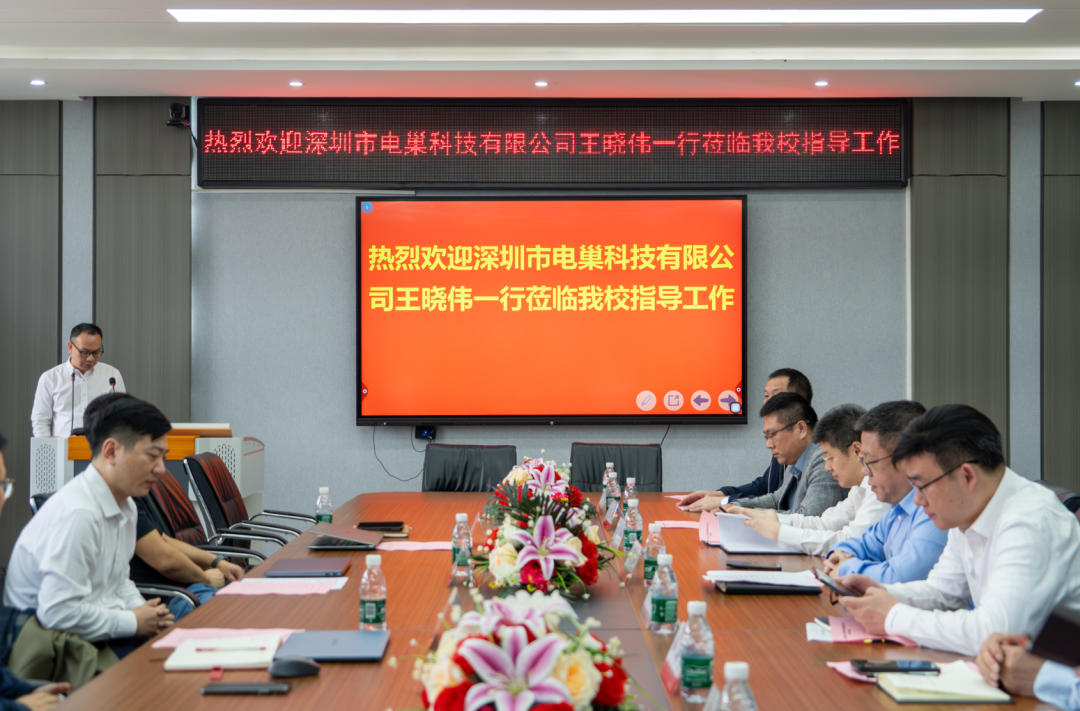 仪式前,电巢科技王晓伟一行参观了PA视讯平台、计算机学院、经济管理与法学学院等相关实验室,并就电巢工程师学院的建设规划、元宇宙技术在教育教学中的应用、电子产业工程技术人才培养的创新模式以及校企合作拓展与资源共享机制等合作细节进行了深入讨论。