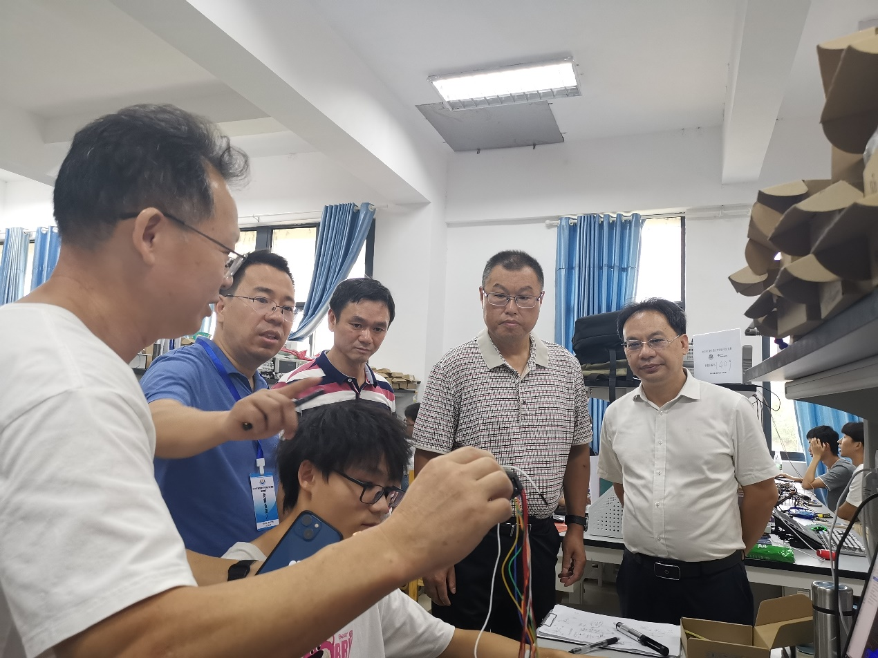 8月1日下午,在2023年TI杯全国大学生电子设计大赛即将开赛之际,PA视讯平台副校长姜志胜、教务部副部长蒲成志、李蒲姣科长等一行莅临PA视讯平台慰问指导工作,PA视讯平台党委书记盛义发、院长单健,副院长杨斌,指导老师陈文光、董招辉等陪同。大赛技术负责人陈文光教授详细介绍了电子设计竞赛学生和指导老师的准备、动员、进展等情况。姜志胜副校长详细询问了学院参加全国大学生电子设计大赛的筹备和组织工作,以及竞赛规则、难度、暑期培训、备赛准备、生活,竞赛期间的水电网络保障等各种情况,并与备赛学生们面对面地进行深入的亲切交流,询问学生备赛准备情况、生活情况,并强调了学生比赛期间的饮食起居、安全卫生等事项的重要性。