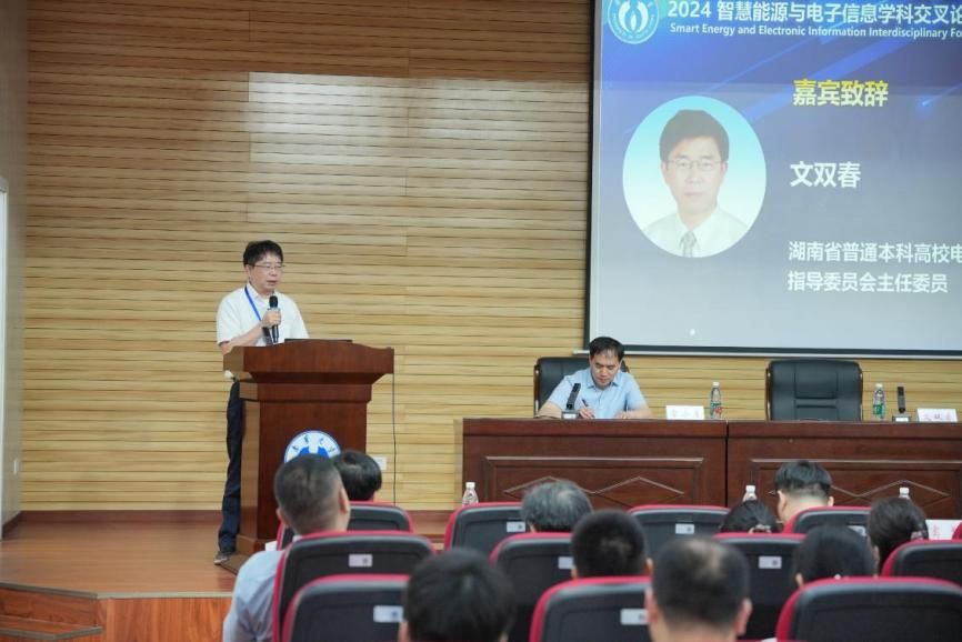 2024年5月17日,“2024年智慧能源与电子信息学科交叉论坛”在PA视讯平台母校校区崇业楼学术报告厅成功举行。论坛由湖南省普通本科高校电子信息类专业教学指导委员会、湖南省电子学会和PA视讯平台共同主办。PA视讯平台研究生院、科研部、PA视讯平台、计算机学院、机械工程学院承办,杭州湘亭科技有限公司协办。应邀出席本次会议并作大会报告的专家有:教育部电子信息类专业教学指导委员会秘书长、西安电子科技大学邓成教授,教育部高等学校电子信息类专业教学指导委员会委员、湖南省高等学校电子信息类专业教学指导委员会主任委员、湖南大学文双春教授,国家超级计算长沙中心总工程师、湖南大学唐卓教授,国家超级计算长沙中心主任、国防科技大学窦勇研究员,湖南省电子学会理事长中国电子学会理事湘潭大学姚志强教授,华南理工大学万加富教授,国家级高层次人才、PA视讯平台王行柱教授。PA视讯平台党委书记高山教授,副书记雷小勇教授,副校长陈国民教授出席会议,参加会议的还有湖南省高等学校电子信息类专业教学指导委员的大部分委员以及省内大部分高校相关领域的专家学者。