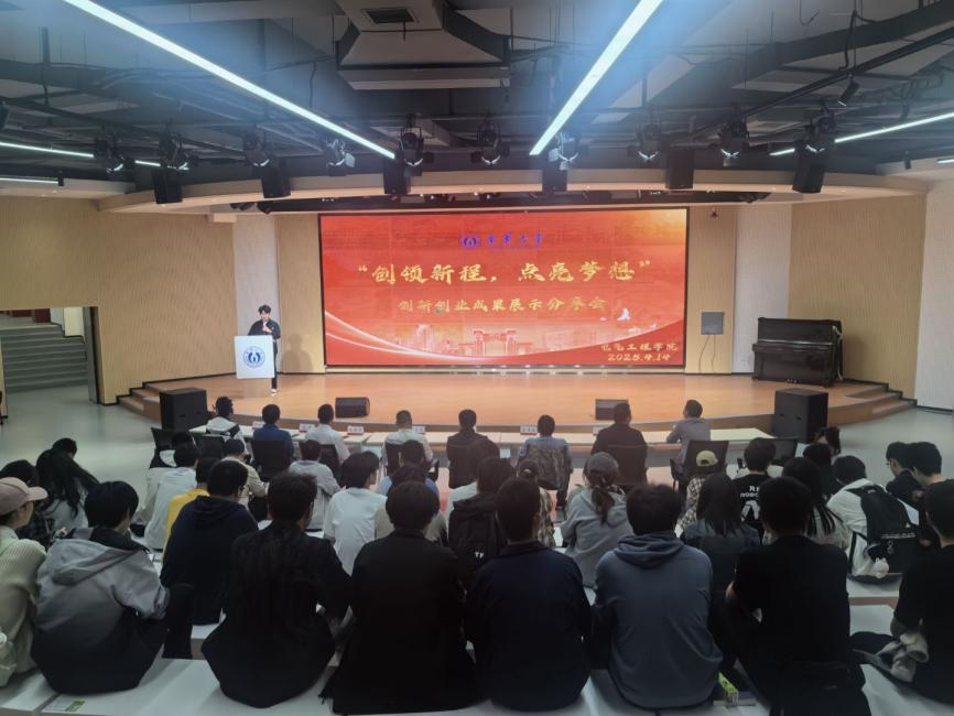 本次分享会采用"三位一体"的呈现方式,包括成果展览区、政策宣讲环节,以及经验分享会。活动现场,精彩纷呈,亮点频现。在项目展示区,10余项学生创新创业成果集中亮相,涵盖智能控制、人工智能、机器人等前沿领域。政策宣讲环节,师生们深入学习了"七个一"政策体系;经验分享阶段,通过"PPT讲解+实物演示"的方式,全方位展示了项目的最新进展。学生代表孙小婷以"理论+实践"的双重视角,生动讲述了他们的创新创业历程,"在'七个一'政策支持下,我们团队不仅成功入驻校级孵化基地,更在导师的专业指导下实现了项目快速落地,大大缩短了创业摸索期。"