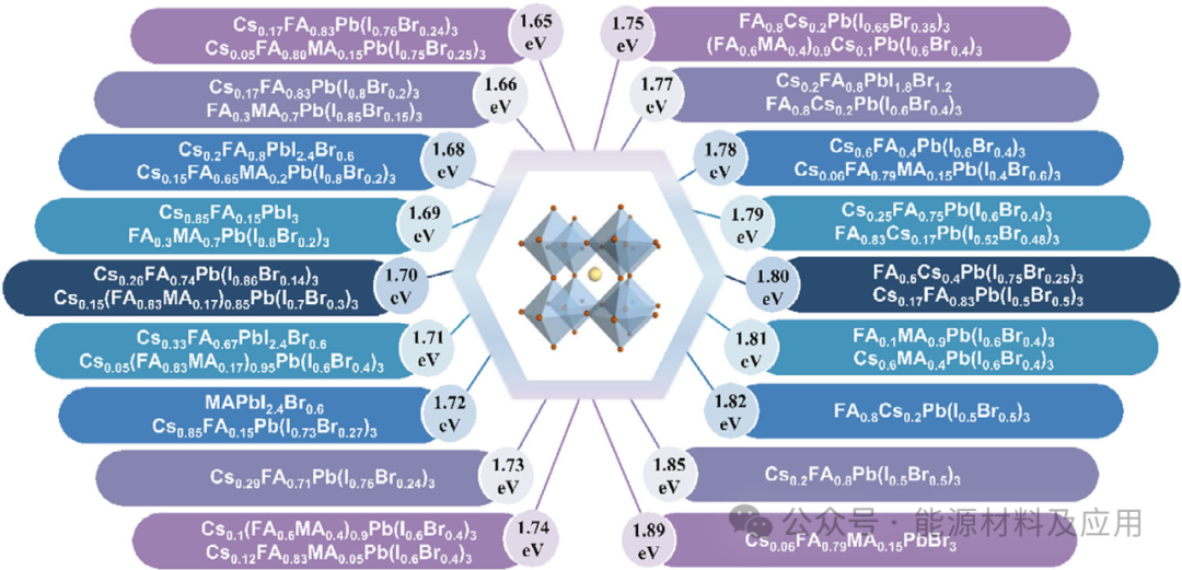 图9、不同带隙下ABX₃钙钛矿成分设计汇总图。