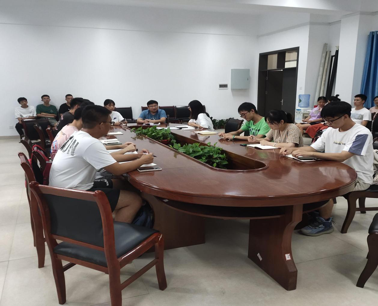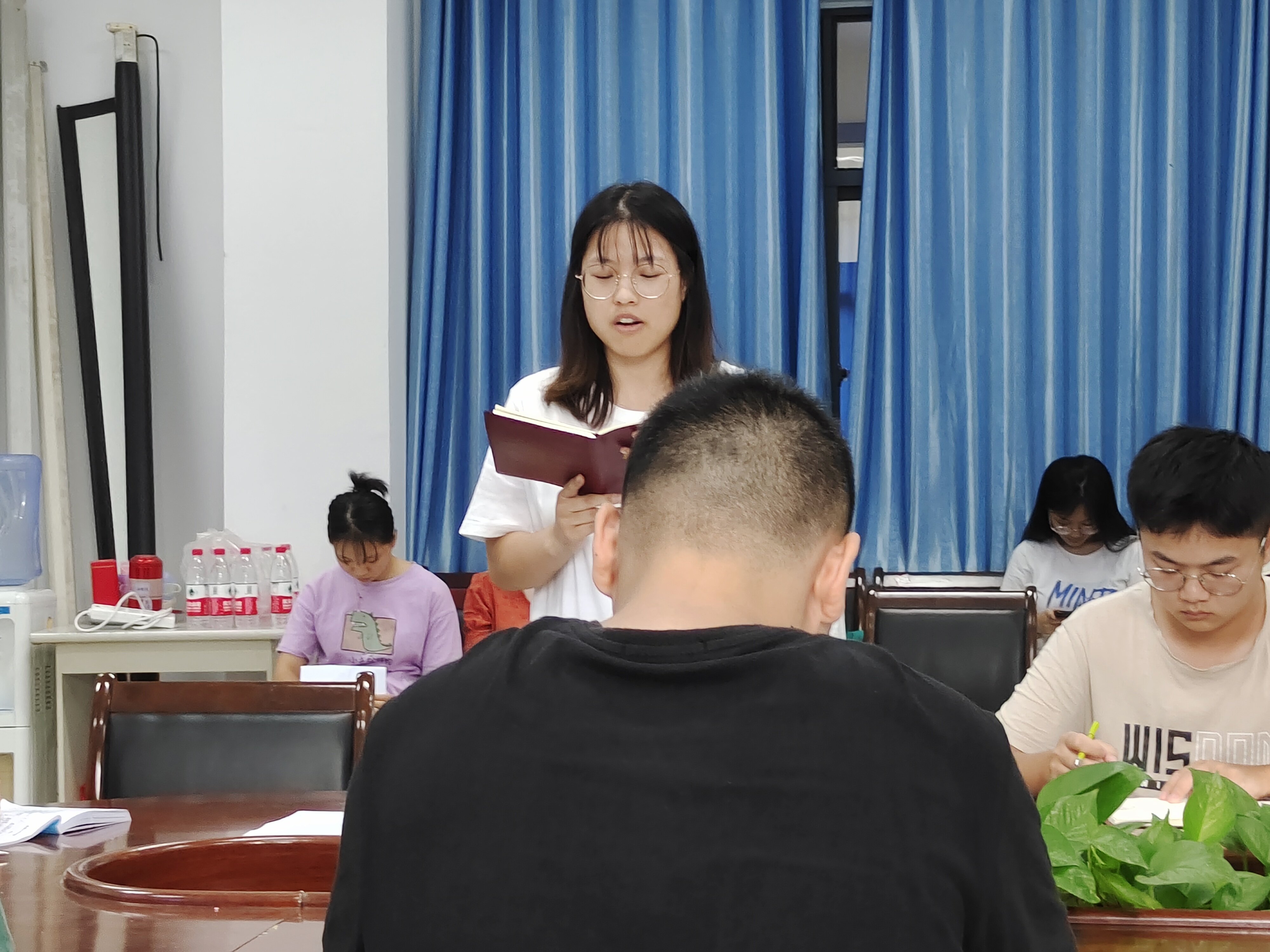 会议第三项,新一届支委成员做自我介绍。接着,大会就2021年下半年发展对象培训人员进行讨论,确保这批入党积极分子基本具 备党员条件,确保党员发展的质量。