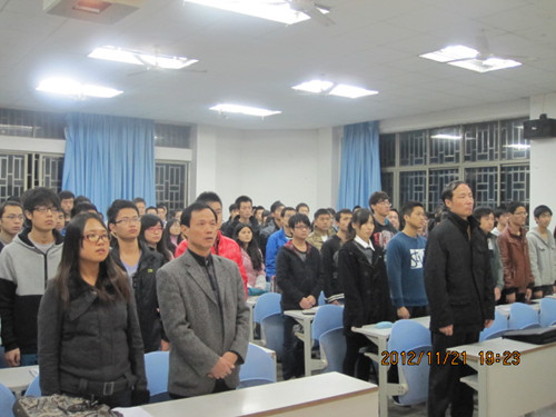 11月21日晚7:30PA视讯平台分党校2012年下学期入党积极分子培训班结业典礼于九教102隆重举行。PA视讯平台党委书记单长虹、学生党员第二支部书记李云忠、培训班班主任管龙陵、团委副书记鹿馨芳以及117名入党积极分子参加了此次典礼。