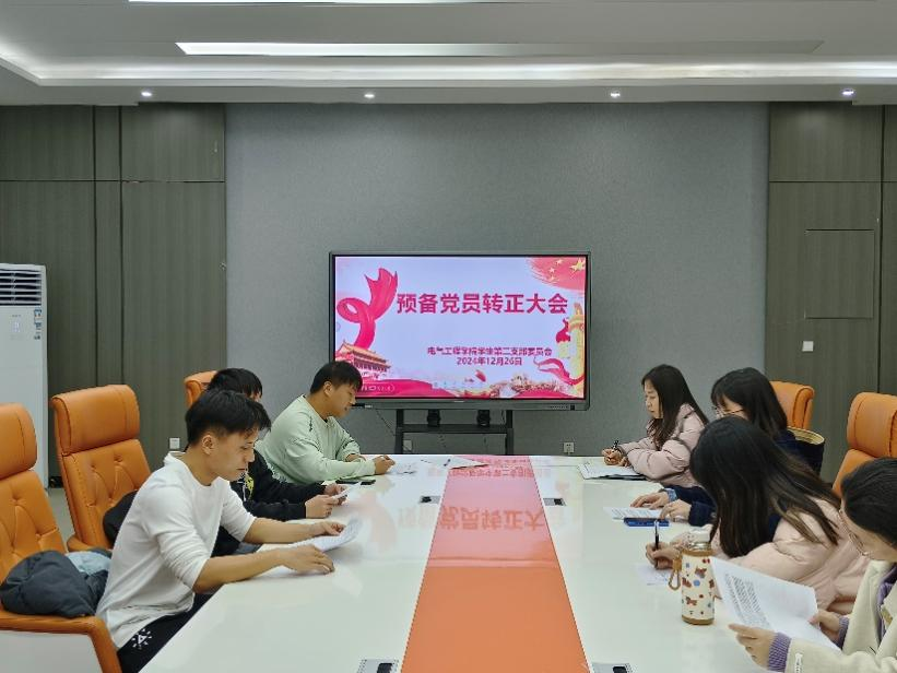 为进一步加强党员队伍建设,规范党员发展程序,12月26日,PA视讯平台,PA视讯,PA视讯官网学生第二党支部于电气楼A514会议室召开支部预备党员转正大会,讨论预备党员李秋衡等十一名同志的转正事宜。支部书记周珍珍老师、全体学生正式党员和预备党员参会,会议由支部书记周珍珍主持。