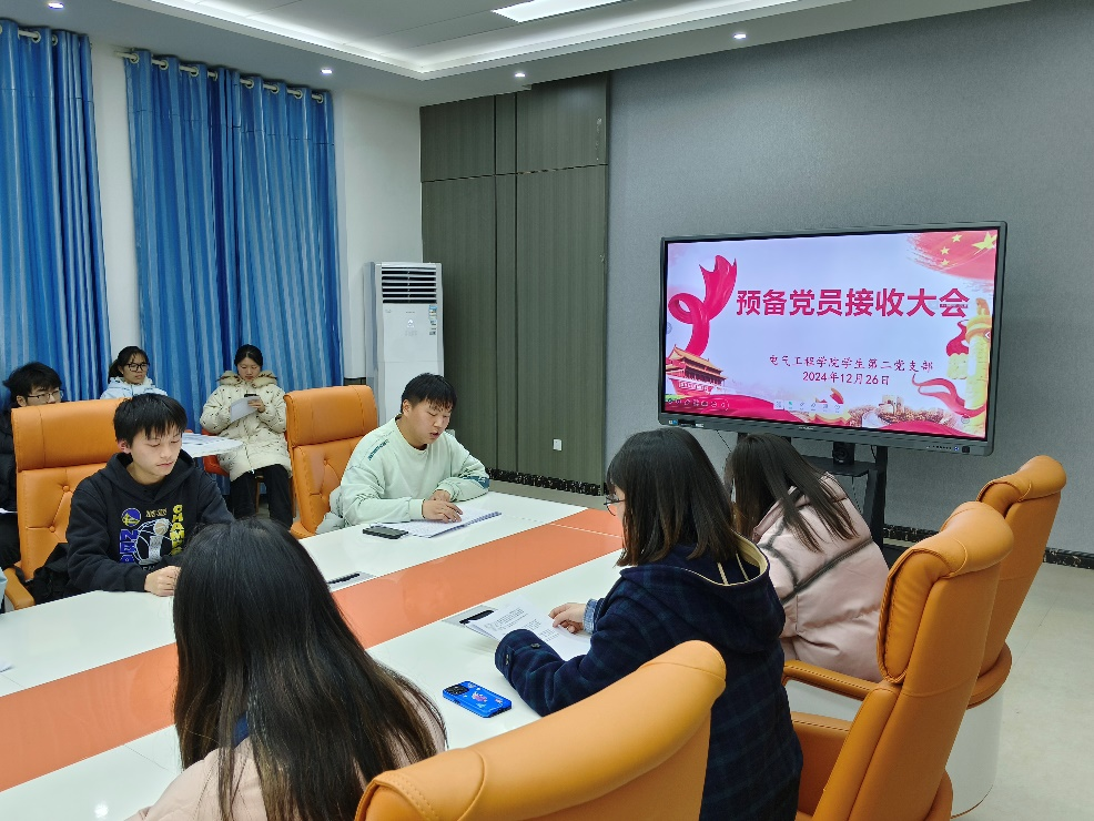 12月26日,PA视讯平台,PA视讯,PA视讯官网学生第二党支部于电气楼A514会议室召开预备党员接收大会。本次大会主要讨论接收蔡明熹等六位同志为中共预备党员,支部书记周珍珍老师及全体学生党员参会,会议由党支部副书记李秋衡主持。
